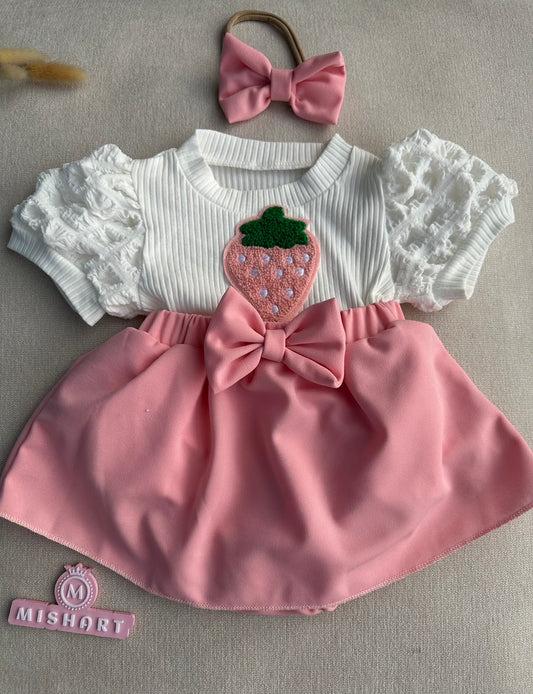 Beautiful pink cherry dress with socks & headband