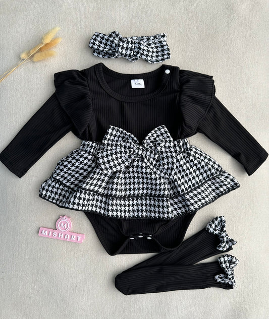 Black romper dress socks & headband