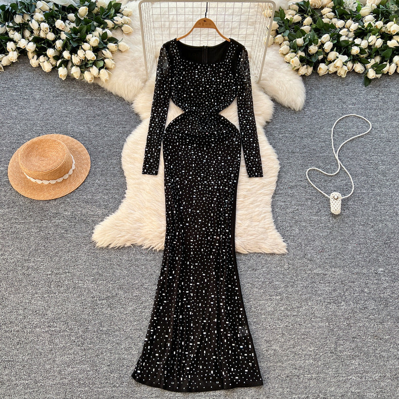 Blossom Series High-end Printed Puff Sleeves Elegant long Dress