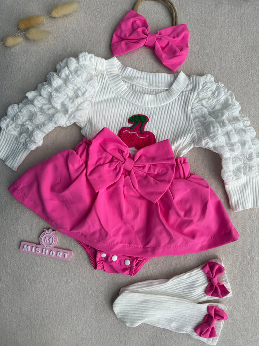 Beautiful pink cherry dress with socks & headband