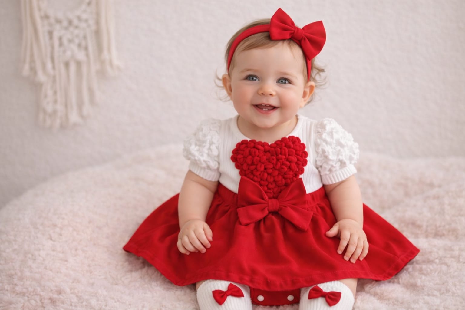 3D Cute love shape attached romper with headband & socks