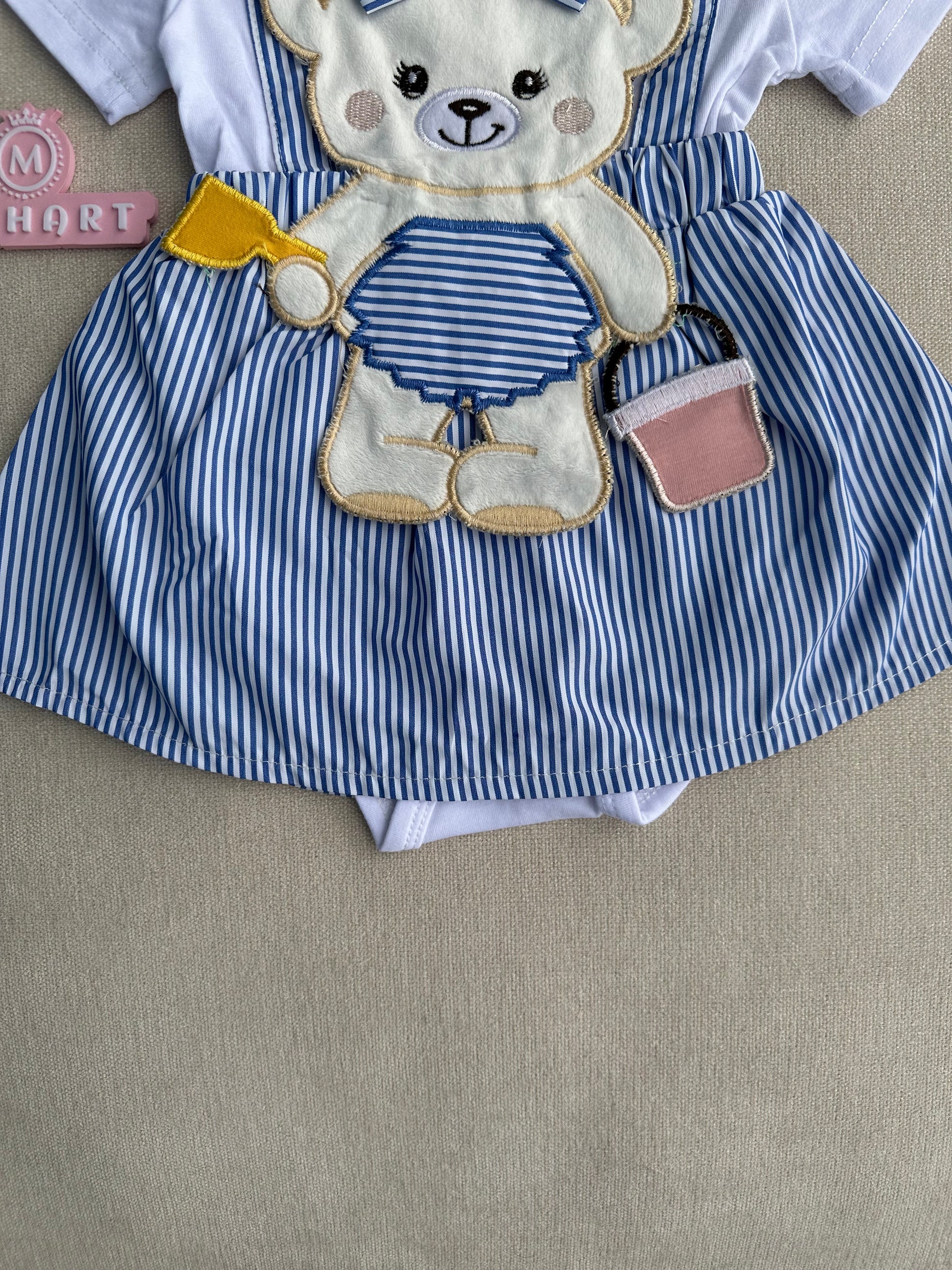 Bear stripe romper with headband
