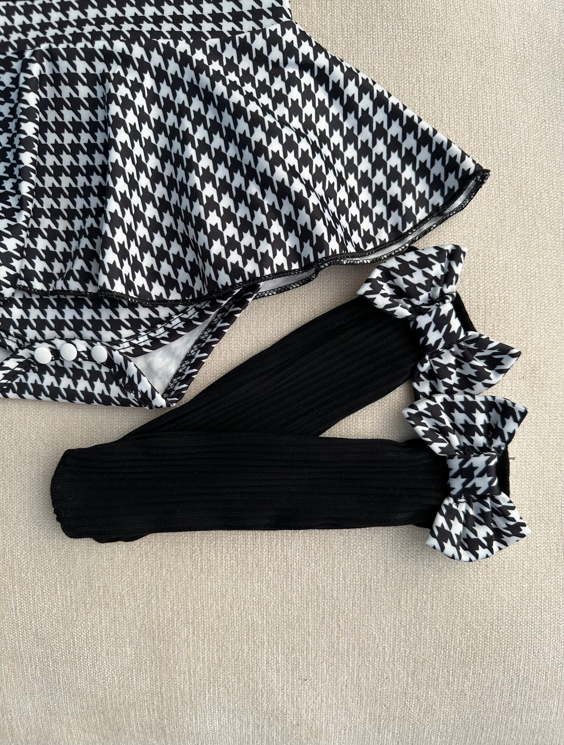 - Classic black & white houndstooth skirt for a chic look