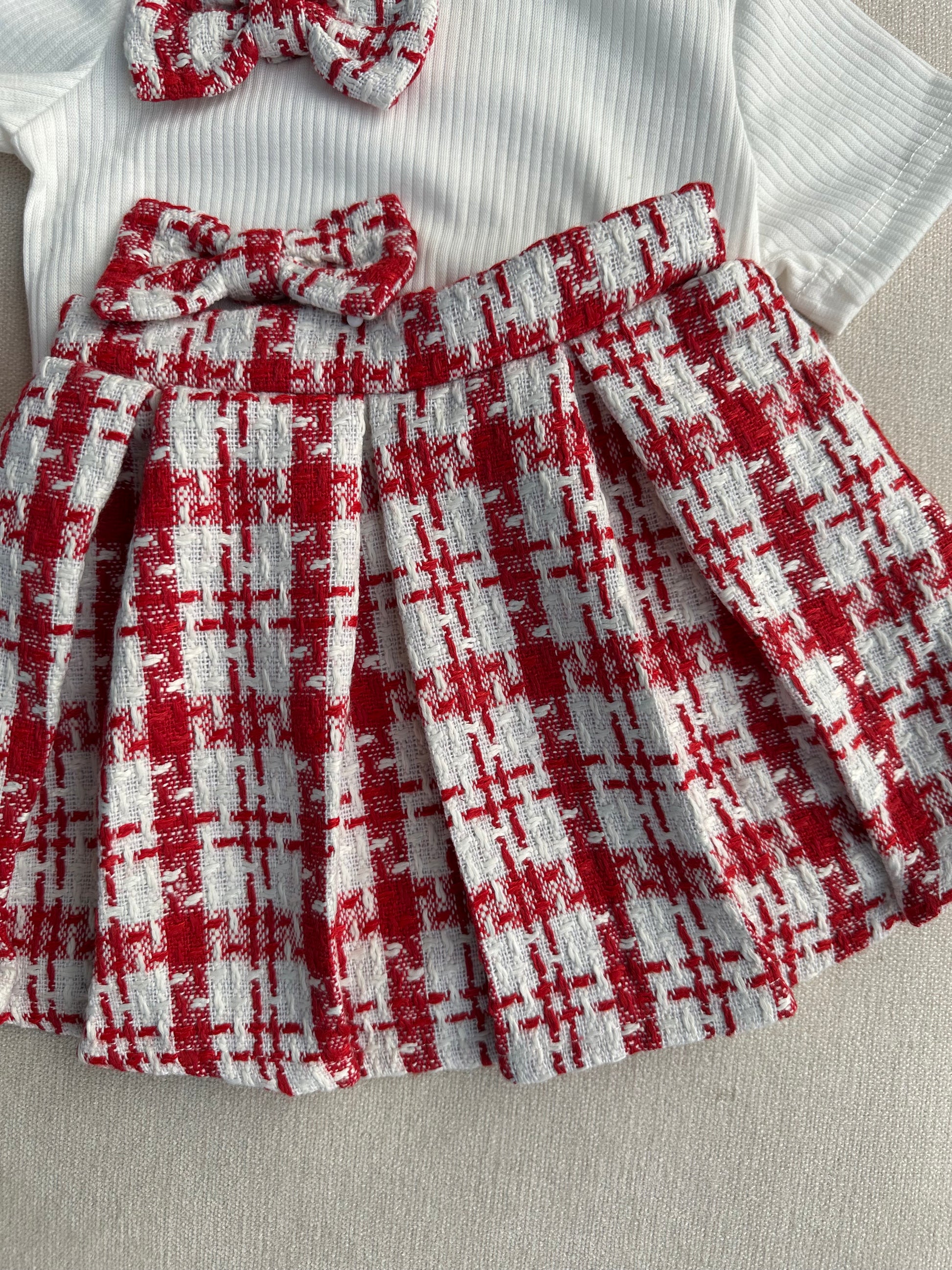 Elegant Red Tweed Baby Dress Set