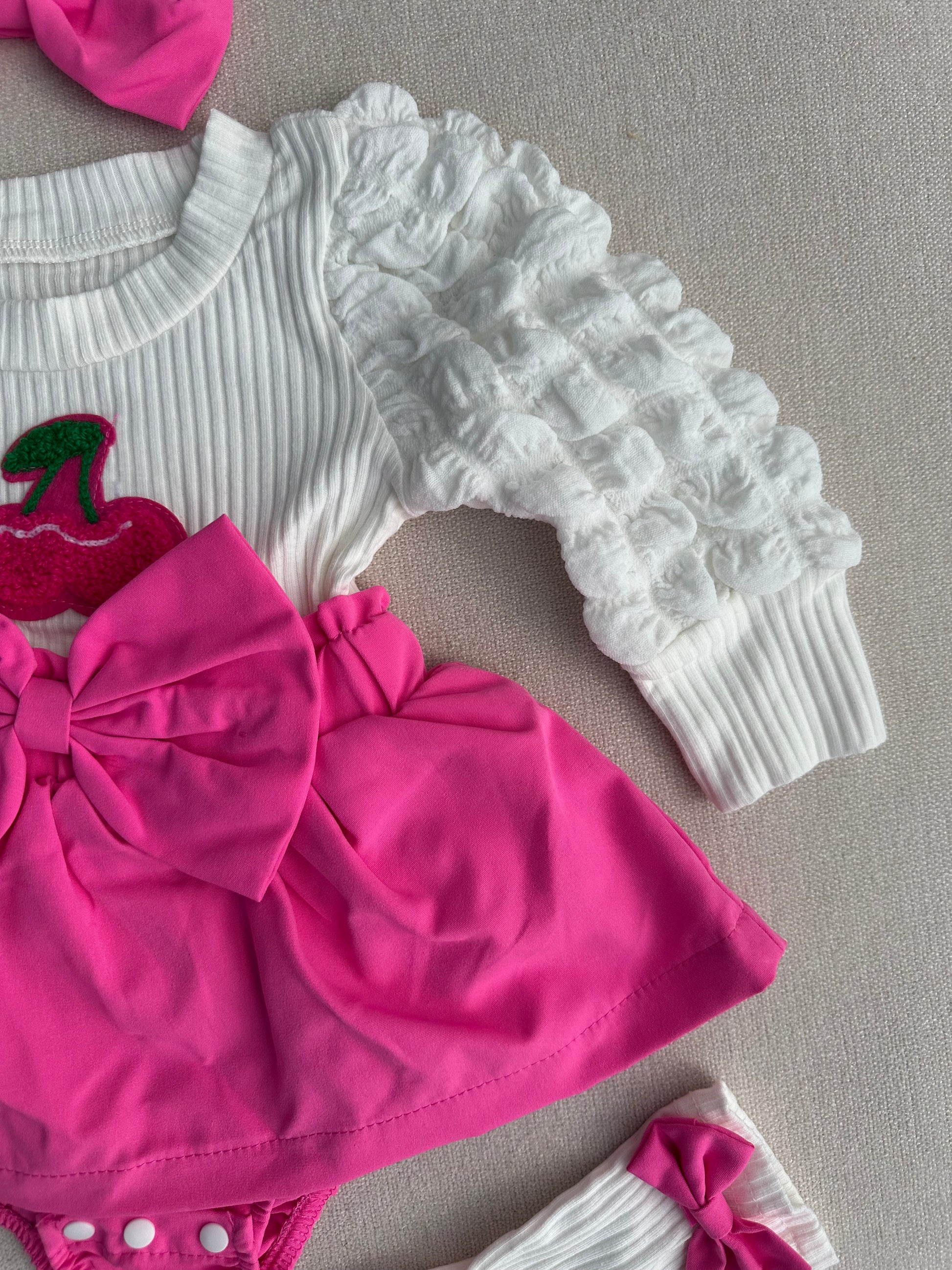 Beautiful pink cherry dress with socks & headband