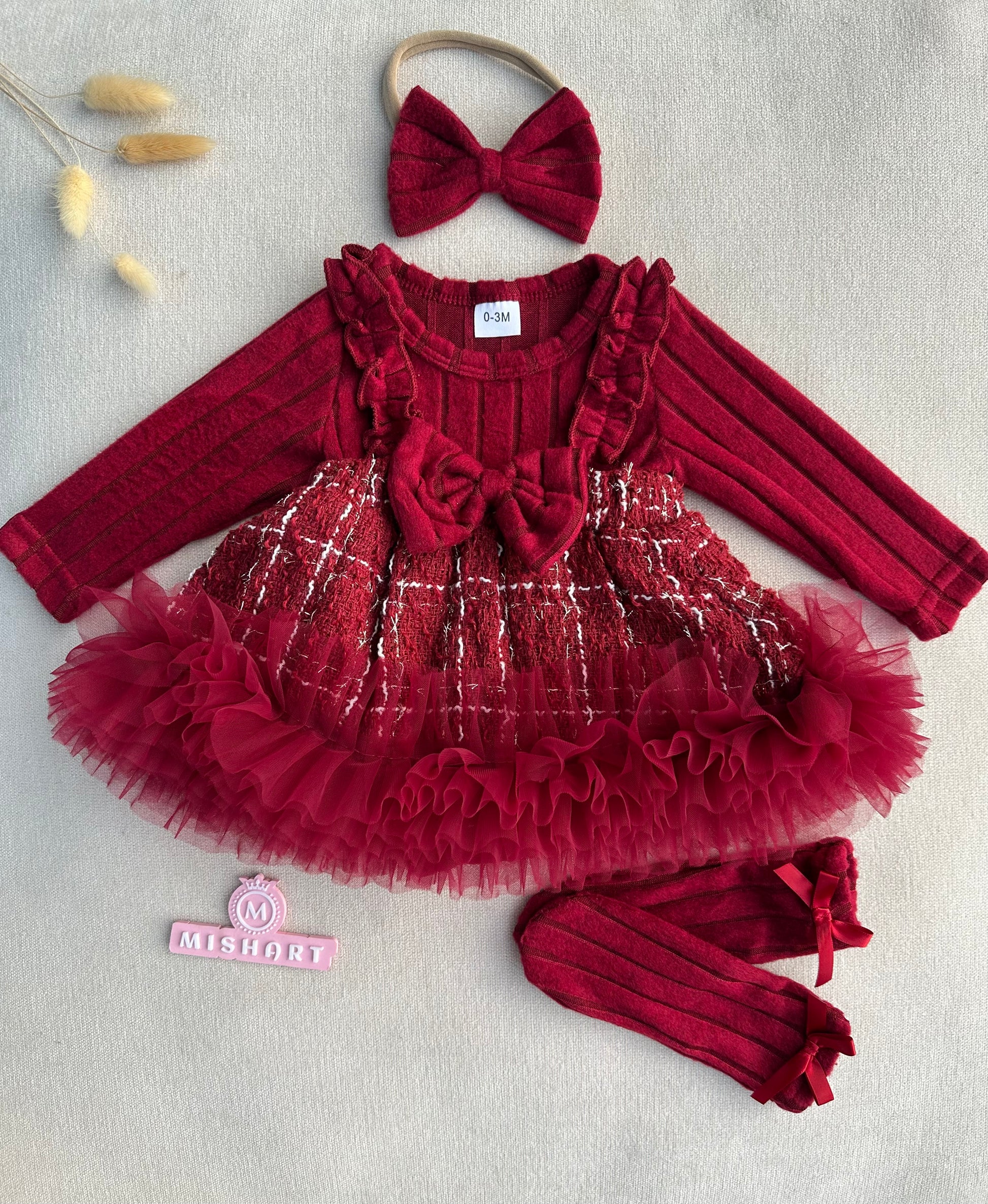 Beautiful velvet tweed dress set for baby